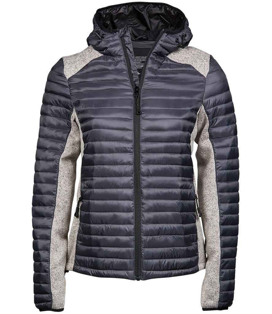 Tee Jays Womens Crossover Hooded Padded Outdoor Jacket | Space Grey/Grey Melange